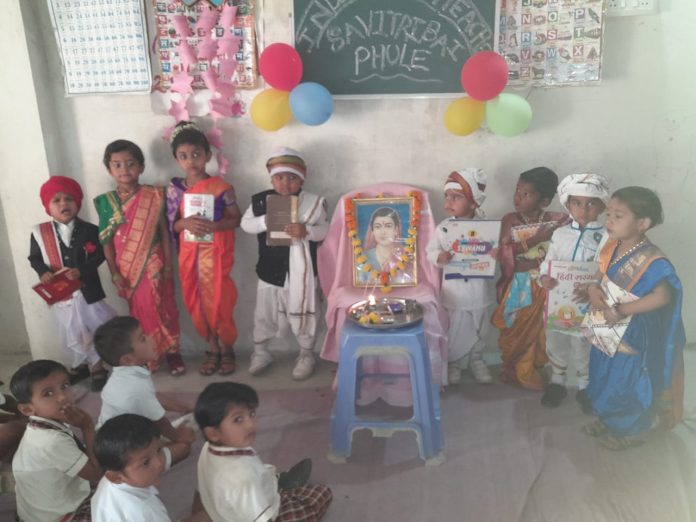 स्थानिक श्री संत केजाजी कॉन्व्हेन्ट घोराड येथे स्त्री शिक्षणाच्या प्रनेत्या, क्रांती ज्योती सावित्री बाई फुले यांची जयंती मोठ्या उत्साहात साजरी करण्यात आली. यावेळी विद्यार्थ्यांनी सावित्री बाई फुले, जोतिबा फुले यांची वेशभूषा परिधान केली होती.सर्वप्रथम शाळेचे संस्था संचालक तथा मुख्याध्यापक प्रशांत झाडे, शाळेतील शिक्षिका यांनी क्रांती ज्योती सावित्री बाई फुले यांच्या फोटो चे विधिवत पूजन केले.सावित्री बाई फुले यांचा जीवनाचा खडतर प्रवास , अनेक बिकट परिस्थितीचा सामना करत शिक्षण देण्याचे काम कसे अविरत सुरू ठेवले या विषयी विद्यार्थांना मोलाचे मार्गदर्शन केले. सावित्री बाई फुले जयंती तसेच महिला मुक्ती दिनाचे औचित्य साधत शाळेत तीन दिवसीय क्रीडा स्पर्धेचे आयोजन करण्यात आले होते.यात दोन दिवसीय विद्यार्थ्यांची व एक दिवसीय पालकांची क्रीडा स्पर्धा आयोजित करण्यात आली होती.विद्यार्थ्यांचा शारीरिक विकास होण्याच्या दृष्टीने नर्सरी, केजी वन , केजी टू च्या सर्वच विद्यार्थ्यांनी सहभाग नोंदविला होता. पालकांनी सुद्धा यावेळी मोठ्या उत्साहात क्रीडा स्पर्धेत भाग नोंदविला. कार्यक्रमाच्या यशस्वी आयोजनासाठी शाळेतील शिक्षिका सुवर्णा पिसे, करिश्मा तेलरांधे , आरती भुरे यांनी परिश्रम घेतले.