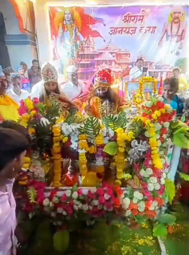 अयोध्या आये मेरे राम बोलो जय जय श्रीराम म्हणत यात संतोषमामा यांनी सादर केलेली झाकी अनेकांचे लक्ष वेधून घेणारी ठरली शनिवारी ता १७ पर्यंत या संगीतमय रामायण कथेची येथे सांगता होणार आहे