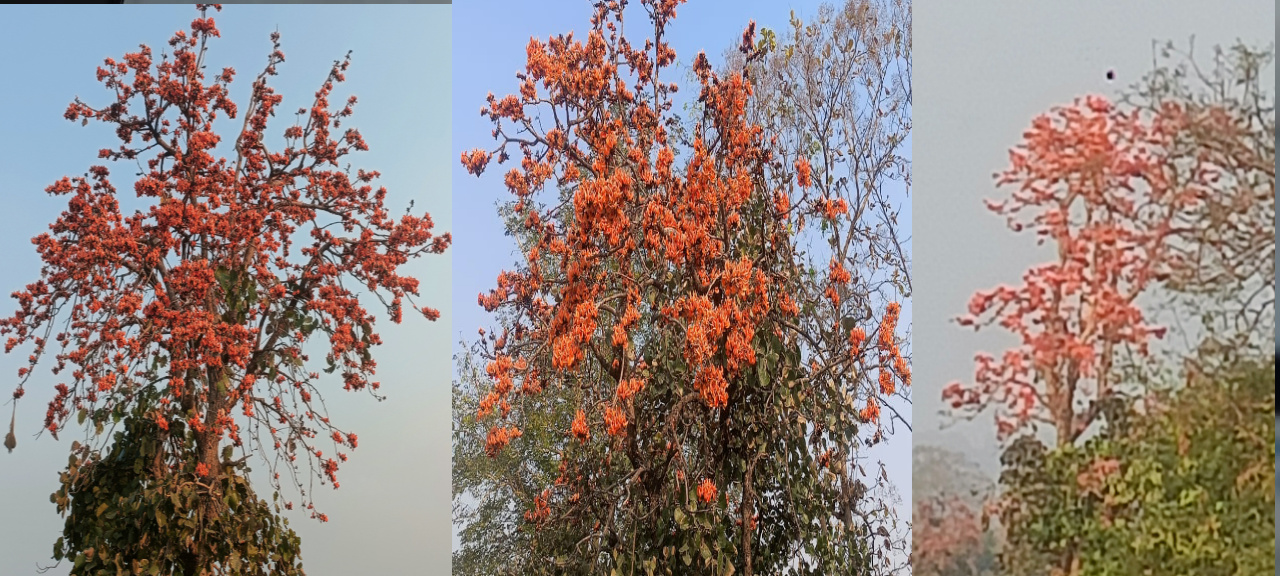 सध्या सौम्य उन्हाळ्याची चाहूल लागली असली तरी सकाळच्या वेळी थंडीची हलकी जाणीव अजूनही होत आहे. शिशिर ऋतू मावळत असताना वसंत ऋतूने हळूहळू बहरायला सुरुवात केली आहे. या ऋतू परिवर्तनात ठिकठिकाणी पळसाची झाडे नाविन्यपूर्ण व मनमोहक रंगांची उधळण करताना दिसत आहेत.
