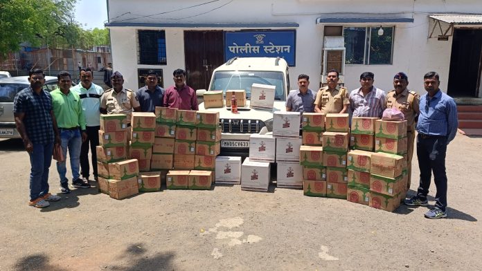 पोलिसांनी MH-05-CV-6331 क्रमांकाच्या पांढऱ्या रंगाच्या महिंद्रा स्कॉर्पिओ वाहनाची तपासणी केली असता त्यामध्ये मोठ्या प्रमाणात विदेशी व देशी दारू आढळून आली. यात रॉयल स्टॅग कंपनीच्या २ लिटरच्या ४८ बाटल्या (एकूण किंमत १,४४,००० रुपये) तसेच रॉकेट कंपनीच्या संत्रा देशी दारूच्या ९० एमएलच्या ६,५०० बाटल्या (एकूण किंमत ६,५०,००० रुपये) असा साठा जप्त करण्यात आला. तसेच संबंधित स्कॉर्पिओ वाहन (अंदाजे किंमत १५,००,००० रुपये) जप्त करण्यात आले आहे.