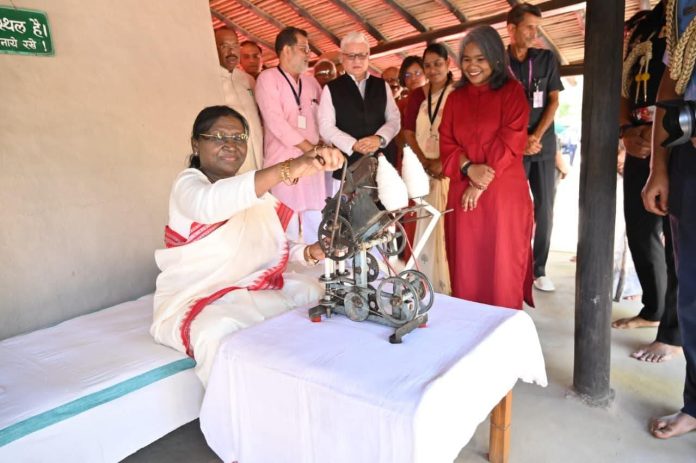 सोबतच कस्तुरबा गांधी यांचे वास्तव्य असलेले ‘बा’ निवास व बापुंच्या तत्कालिन कार्यालयास भेट देऊन पाहणी केली. आश्रम प्रतिष्ठानचे सचिव विजय तांबे यांनी बापुंचे निवास व बापुंशी संबंधित अनेक बाबींची माहिती दिली. यावेळी राष्ट्रपतींनी चरख्यावर प्रत्यक्ष सुत कताई केली. आश्रम भेटीनंतर त्यांनी बापुकुटी परिसरात बेल प्रजातीच्या वृक्षाचे रोपण केले.