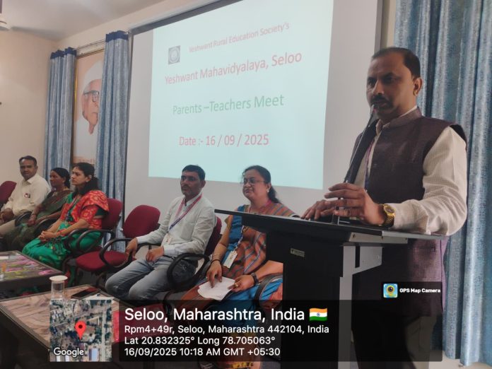 महाविद्यालयात नुकतीच पालक-शिक्षक सभा आयोजित करण्यात आली होती. या सभेचे अध्यक्षस्थान विज्ञानशाखा प्रमुख प्रा. डॉ. अनंत रिंधे यांनी भूषविले. प्रा. सीमा तेलरांधे, पालक प्रतिनिधी मीना गावळकर, हरी मंसी यांची प्रमुख उपस्थिती होती.